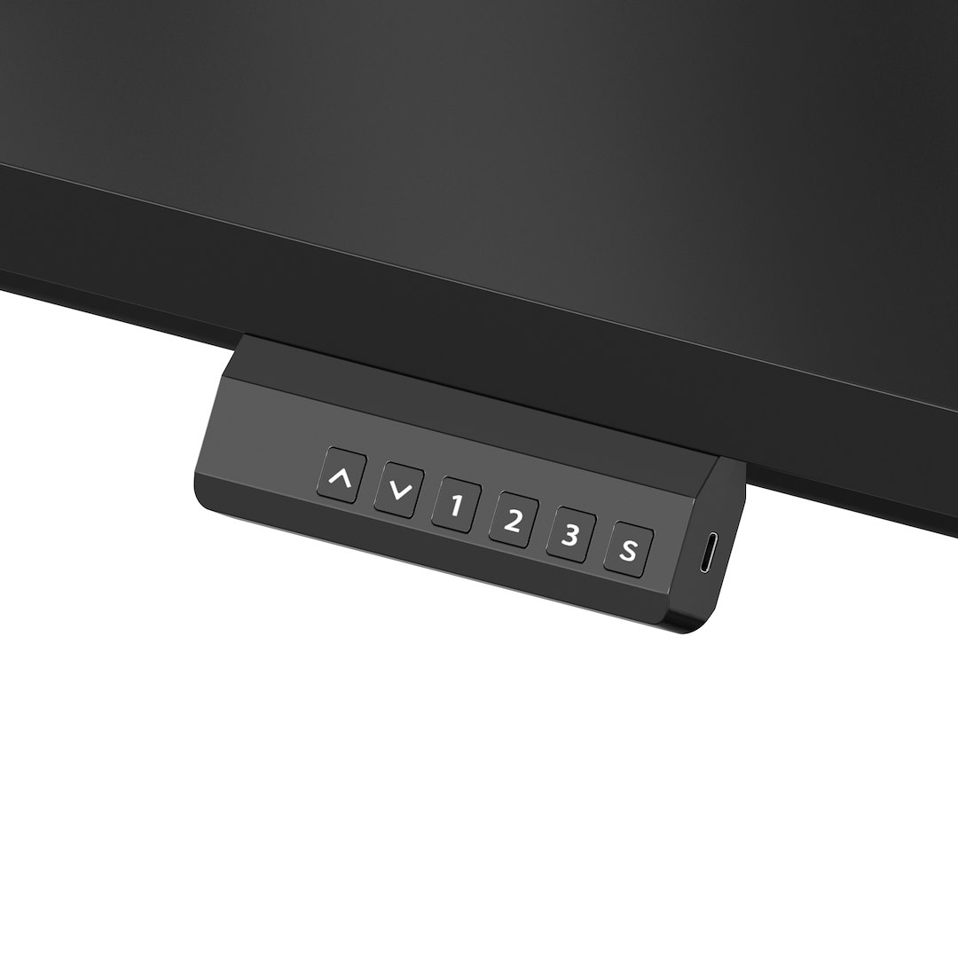- Wygodny i wszechstronny kontroler wyświetla aktualną wysokość blatu i pozwala zapisać trzy ulubione wysokości, do których zyskasz szybki dostęp z użyciem osobnych przycisków.