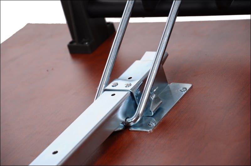 • składany stelaż metalowy składający się z dwóch nóg i mechanizmu składającego