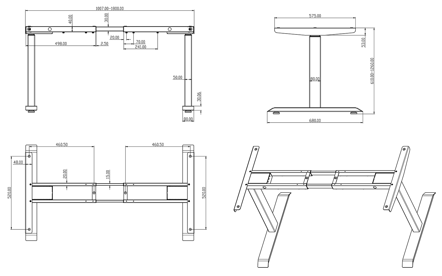 - elektryczna regulacja wysokości w zakresie 61-126 cm realizowana za pomocą dwóch silników