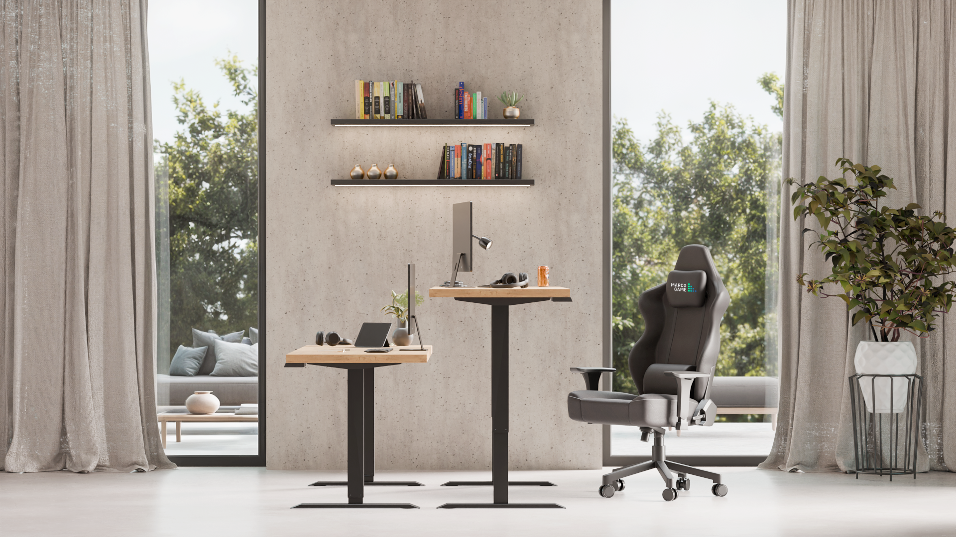 Aby pracować bardziej zdrowo najlepiej jest siedzieć i stać naprzemiennie, w czym pomóc może stelaż z elektryczną regulacją wysokości i pamięcią ustawień.