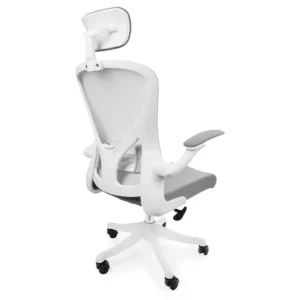 Dzięki rozbudowanym możliwościom regulacji łatwo dopasujesz ułożenie fotela do swoich preferencji. Poduszka lędźwiowa z możliwością zmiany wysokości i kąta zapewnia wsparcie dolnych partii pleców, a regulowany zagłówek odciąży kark podczas długiej pracy.