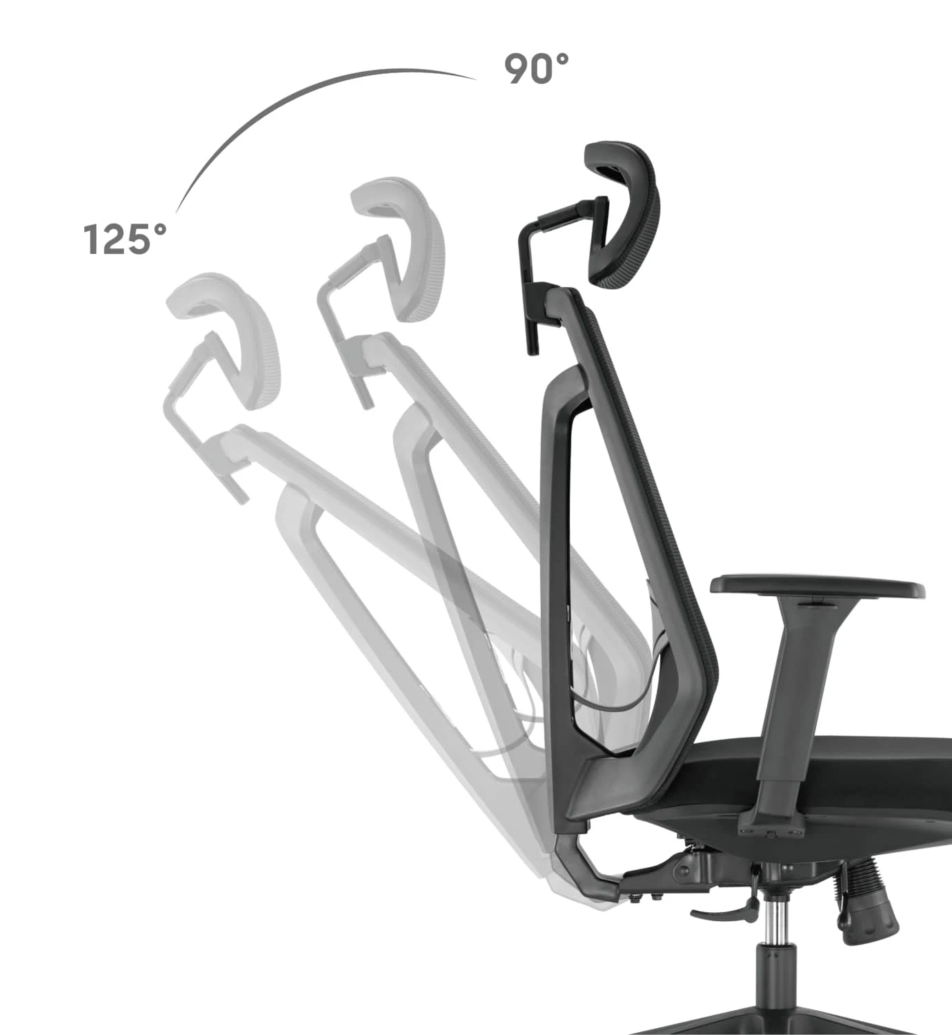Pozwala na dostosowanie kąta oparcia pleców do własnych preferencji i wygody. Regulacja odbywa się w zakresie do 125 st. z możliwością zablokowania w wybranym położeniu.