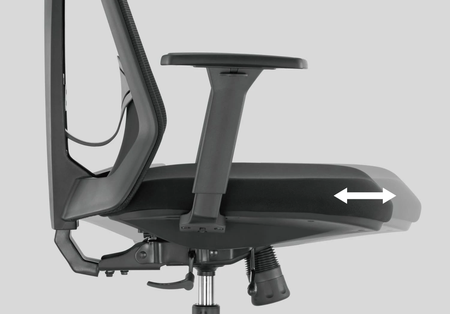 Pozwala szybko dopasować wysokość i głębokość siedziska do wzrostu użytkownika i wysokości biurka.