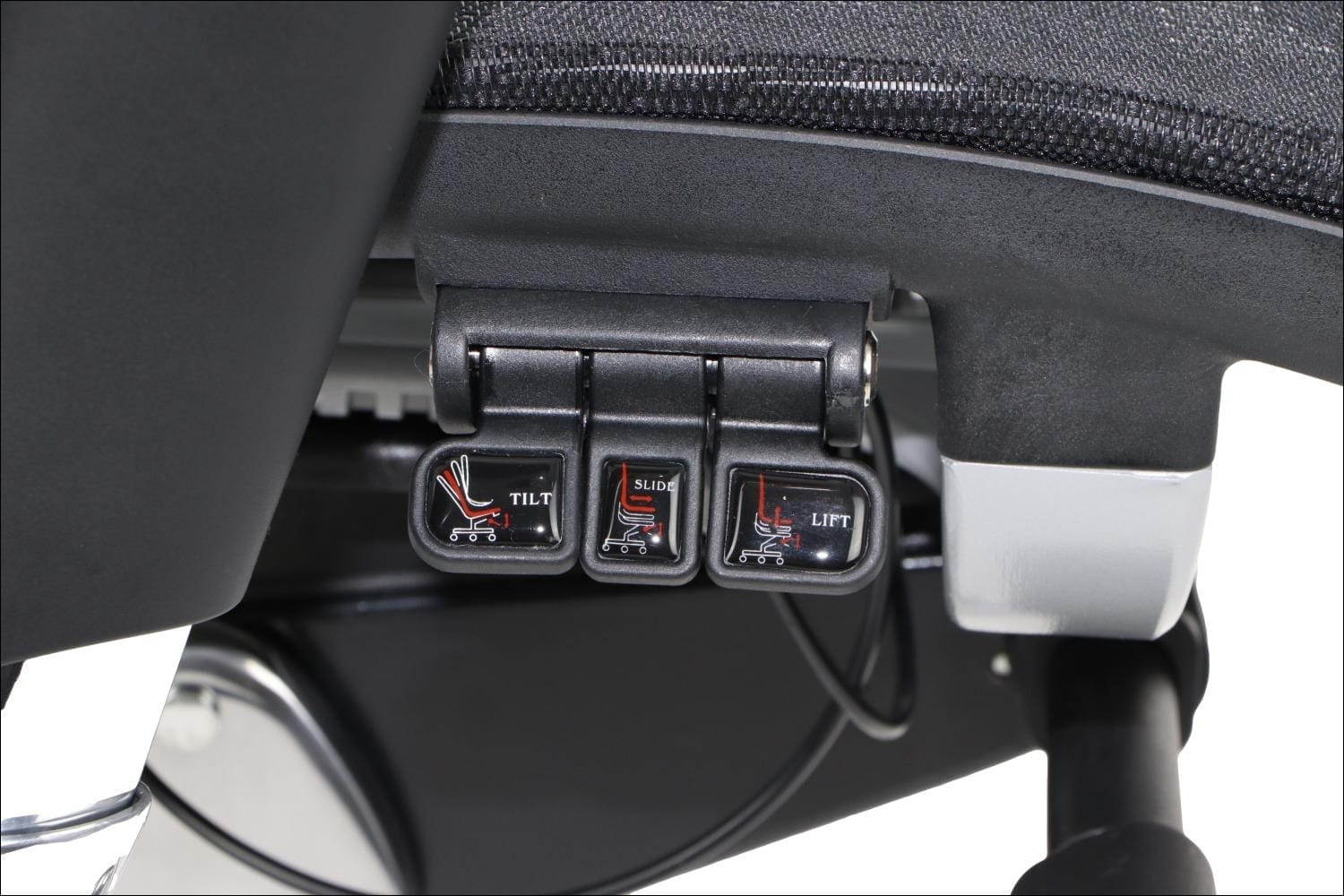 • regulacja wysokości, odchyłu i wysuwu realizowana za pomocą przycisków przy siedzisku