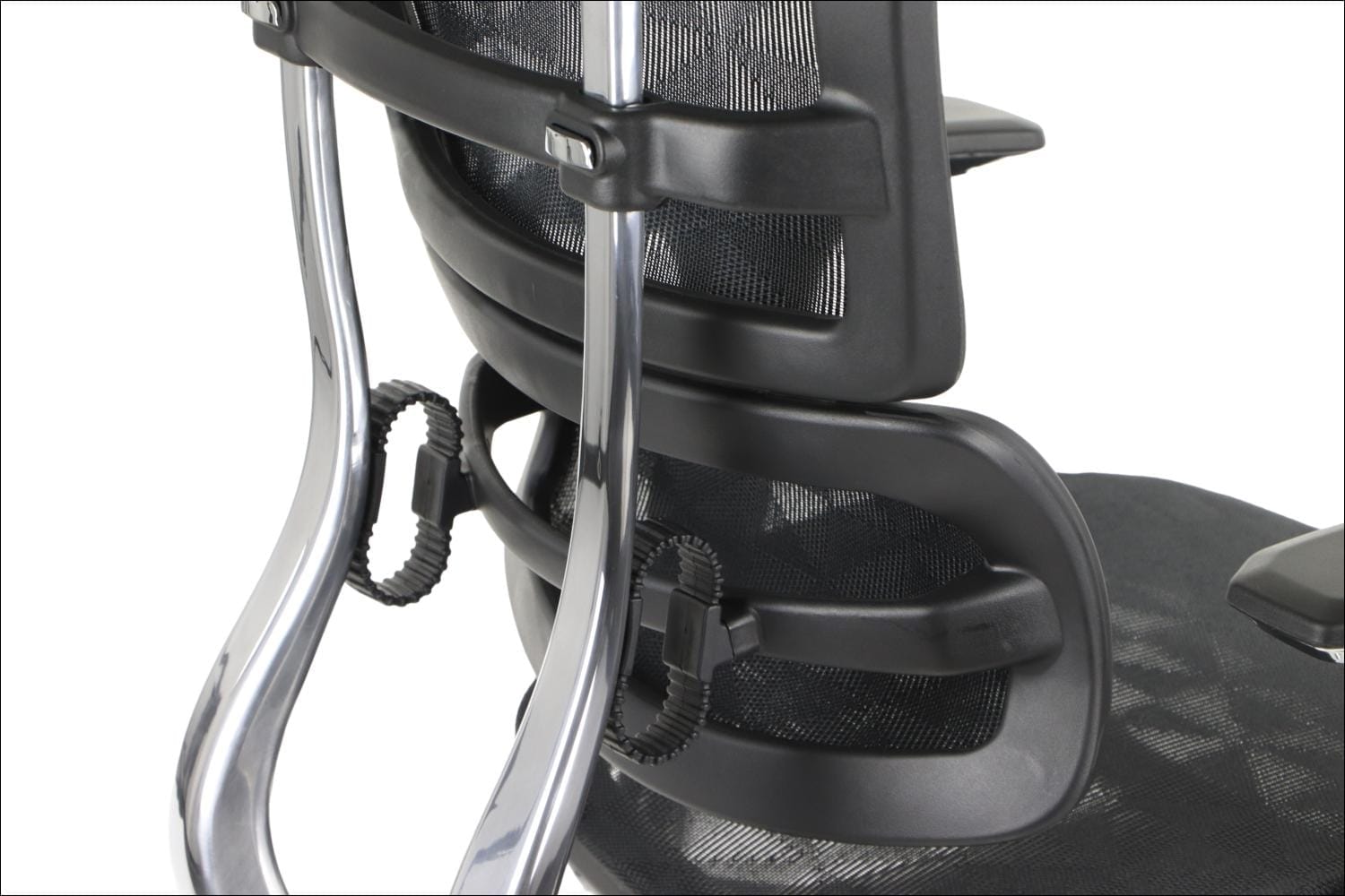 • oparcie regulowane na wysokość – tapicerowane tkaniną siatkową