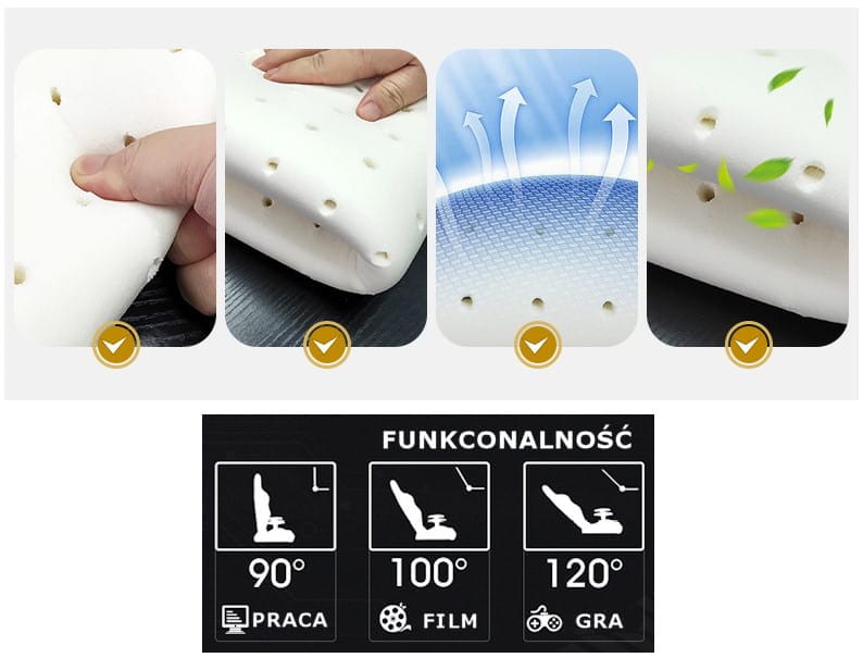 ✅ Doskonałe dopasowanie do pleców – specjalnie wyprofilowany kształt oparcia wspiera zarówno odcinek lędźwiowy, piersiowy, jak i szyjny, zapewniając wygodę na każdym poziomie.