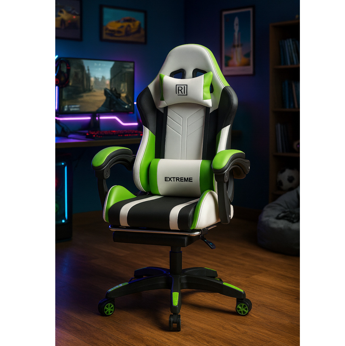 Fotel gamingowy dla gracza EXTREME R1 Green z podnóżkiem