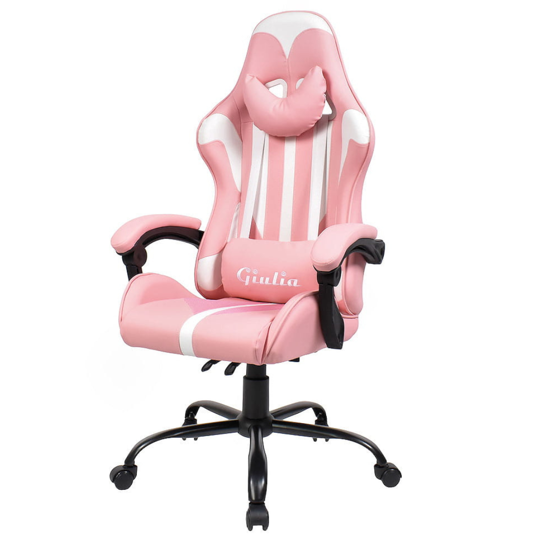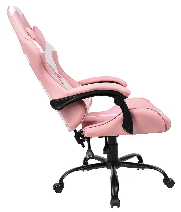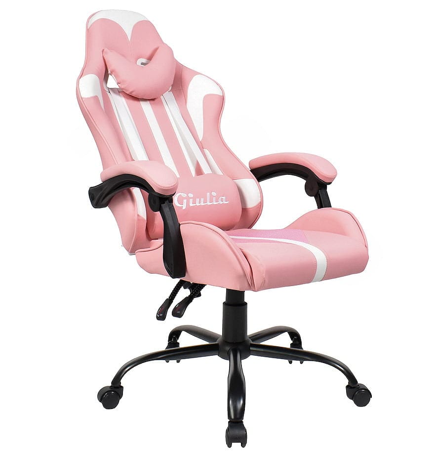 Fotele Giulia Pink to najwyższej jakości fotele Dla Graczy z płynną regulacją oparcia. Makra charakteryzuje się wysoką jakość materiałów jakich użyto do produkcji tych jakże często energicznie i długo użytkowanych foteli. Wielogodzinne granie na tym fotelu jest prawdziwą przyjemnością, a dodatkowe, regulowane poduszki podpierające głowę i lędźwie tylko potęgują poczucie wysokiego komfortu.