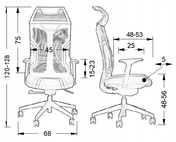 • podłokietniki regulowane (góra-dół) z miękkimi (poliuretanowymi) nakładkami