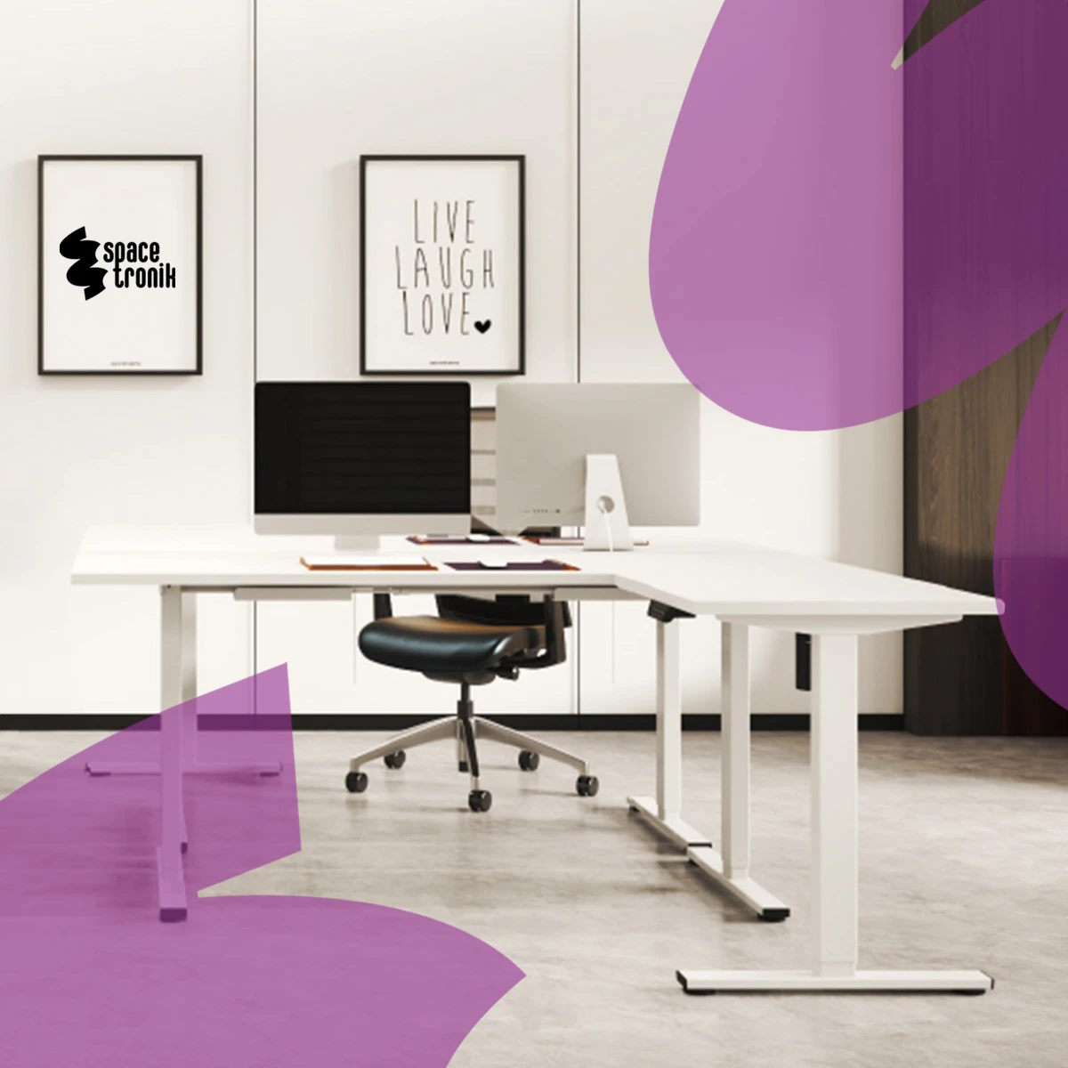 W celu zapewnienia Ci jak największej wygody blat biurka został uformowany w kształt litery „L”. Dzięki temu będziesz mógł mieć pod ręką wszystko to, czego potrzebujesz do wygodnej pracy. Blat biurka składa się z dwóch części, które możesz ustawić zarówno w prawą jak i lewą stronę. Dzięki temu będzie to idealne rozwiązanie zarówno dla osób praworęcznych, jak i leworęcznych. Co więcej, taka budowa pozwoli Ci na prostsze dopasowanie mebla do swojej przestrzeni. Szerokość stelaża jest regulowana w zakresie 102 – 160 cm, a głębokość 107,5 – 157,5 cm. Sam możesz wybrać, jak szeroki blat chcesz do niego dobrać. Dlatego też będziesz mógł postawić na nim wszystko to, co jest Ci potrzebne do wygodnej pracy. Bez różnicy czy będzie to laptop, monitory czy też kuwety z dokumentami. Taki kształt będzie również idealnym rozwiązaniem jako biurko gamingowe dla graczy. Kilka monitorów, kamera, kontrolery do gier czy też różne neony. Z biurkiem elektrycznie regulowanym 123L będziesz miał wszystko to, czego potrzebujesz zawsze na wyciągnięcie ręki.