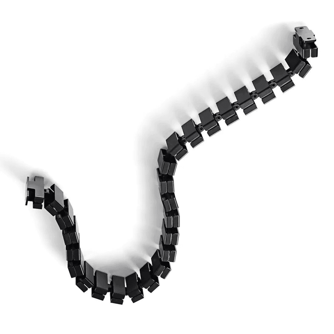 Nowoczesna pionowa prowadnica (osłona) na kable, zapobiega ich plątaniu się. Wyglądem przypomina kręgosłup. Zapewni estetyczne uzupełnienie stanowiska. W kolorze czarnym/białym