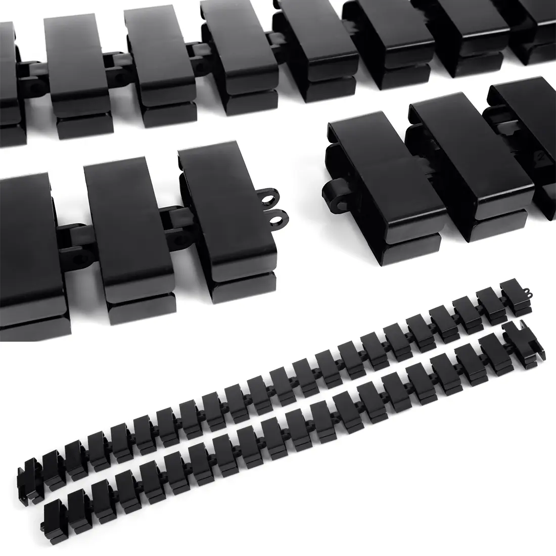 Zatrzaskowe bloki łączą się ze sobą dając łączną długość 118 cm. Prowadnica kablowa wyposażona jest po obu stronach w element zaczepowy posiadający otworu do montażu. Kręgosłup można dowolnie skracać lub wydłużać poprzez dodawanie/usuwanie bloków. Rozmiar pojedynczego bloku to 45 x 17 mm.