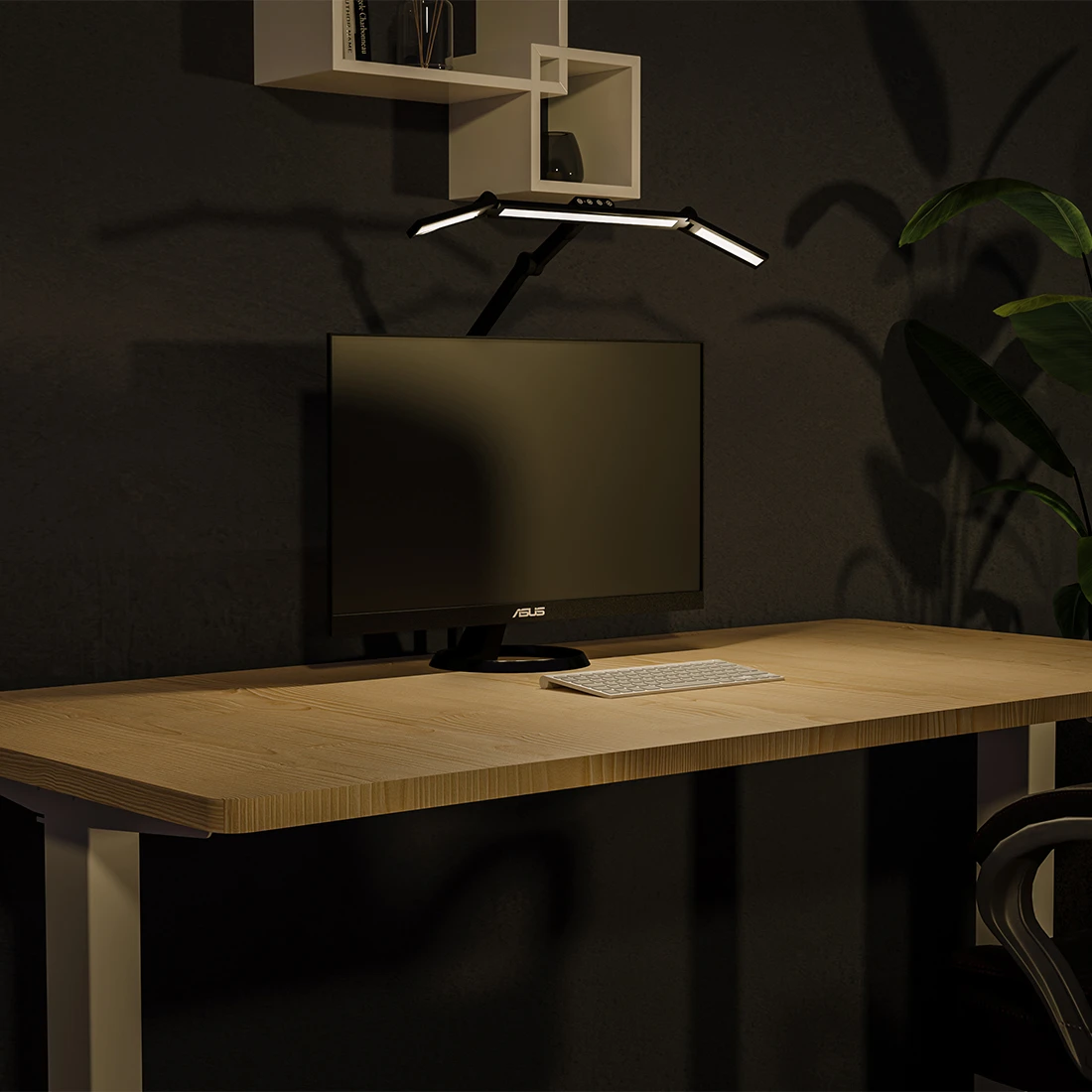 Lampka biurkowa jest wyposażona w zacisk śrubowy oraz sześć ruchomych przegubów. Dzięki temu zyskujesz pełną swobodę w montażu. Lampę z powodzeniem możesz umieścić z tyłu blatu za monitorem, z boku, lub przymocować do półki nad biurkiem.