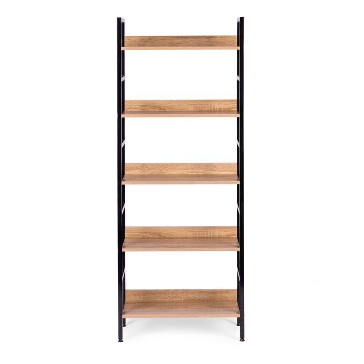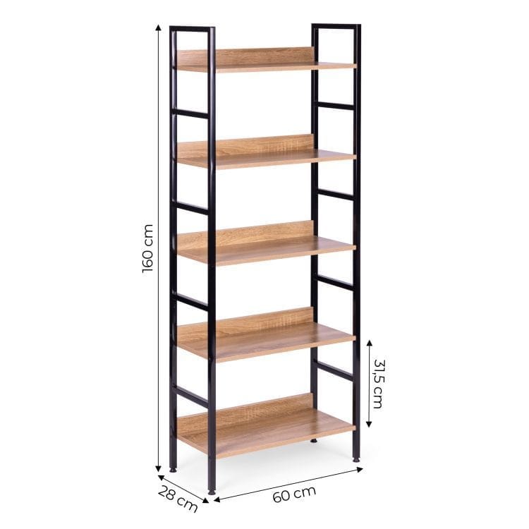 Regał to mebel o prostym, loftowym designie, idealny do różnych pomieszczeń, takich jak sypialnia, salon, przedpokój czy łazienka. Posiada stabilną, metalową konstrukcję z nogami zakończonymi regulowanymi stopkami ochronnymi. Wyposażony jest w 5 półek wykonanych z płyty MDF z dodatkowymi tylnymi listwami, pokrytych okleiną imitującą drewno. Regał posiada możliwość mocowania do ściany dla dodatkowego bezpieczeństwa, a jego wymiary to 160 cm wysokości, 28 cm głębokości i 60 cm szerokości. Idealnie wpasuje się w każdy rodzaj wnętrza, oferując praktyczne miejsce na książki, prasę, ozdoby, ręczniki, kosmetyki i inne potrzebne akcesoria.