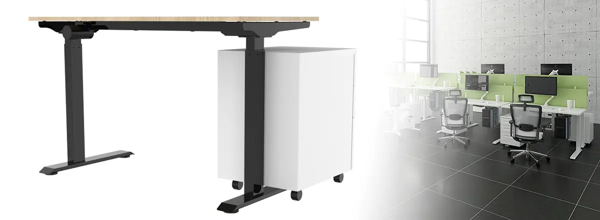 Dwusilnikowy system umożliwia szybszą i bardziej stabilną regulację oraz ułatwia przejście z siedzenia do stania w mniej niż 10 sekund. Wysokiej jakości 3-stopniowa konstrukcja kolumny z regulacją wysokości zapewnia płynne i wygodne przejścia. Maksymalna prędkość regulacji wynosi 38 mm/s. Stelaż wyróżnia się cichą pracą nieprzekraczającą 50 dB.