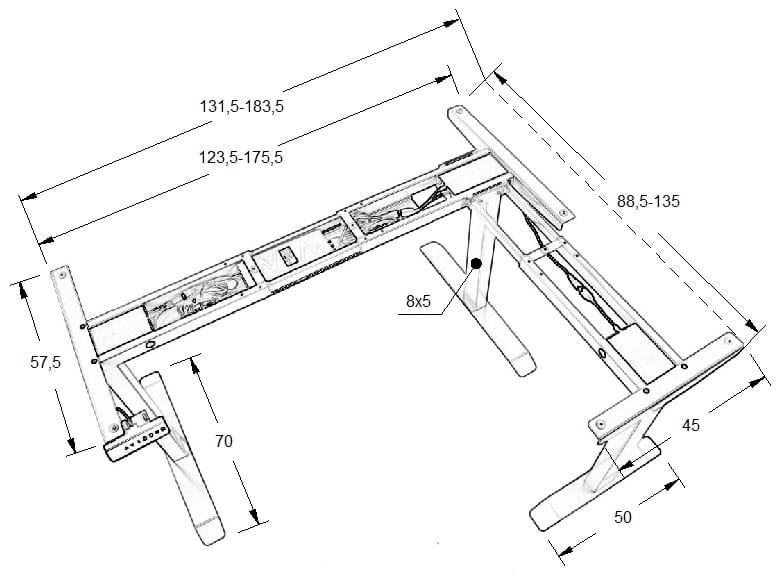 - elektryczna regulacja wysokości w zakresie 71-119 cm realizowana za pomocą trzech silników
