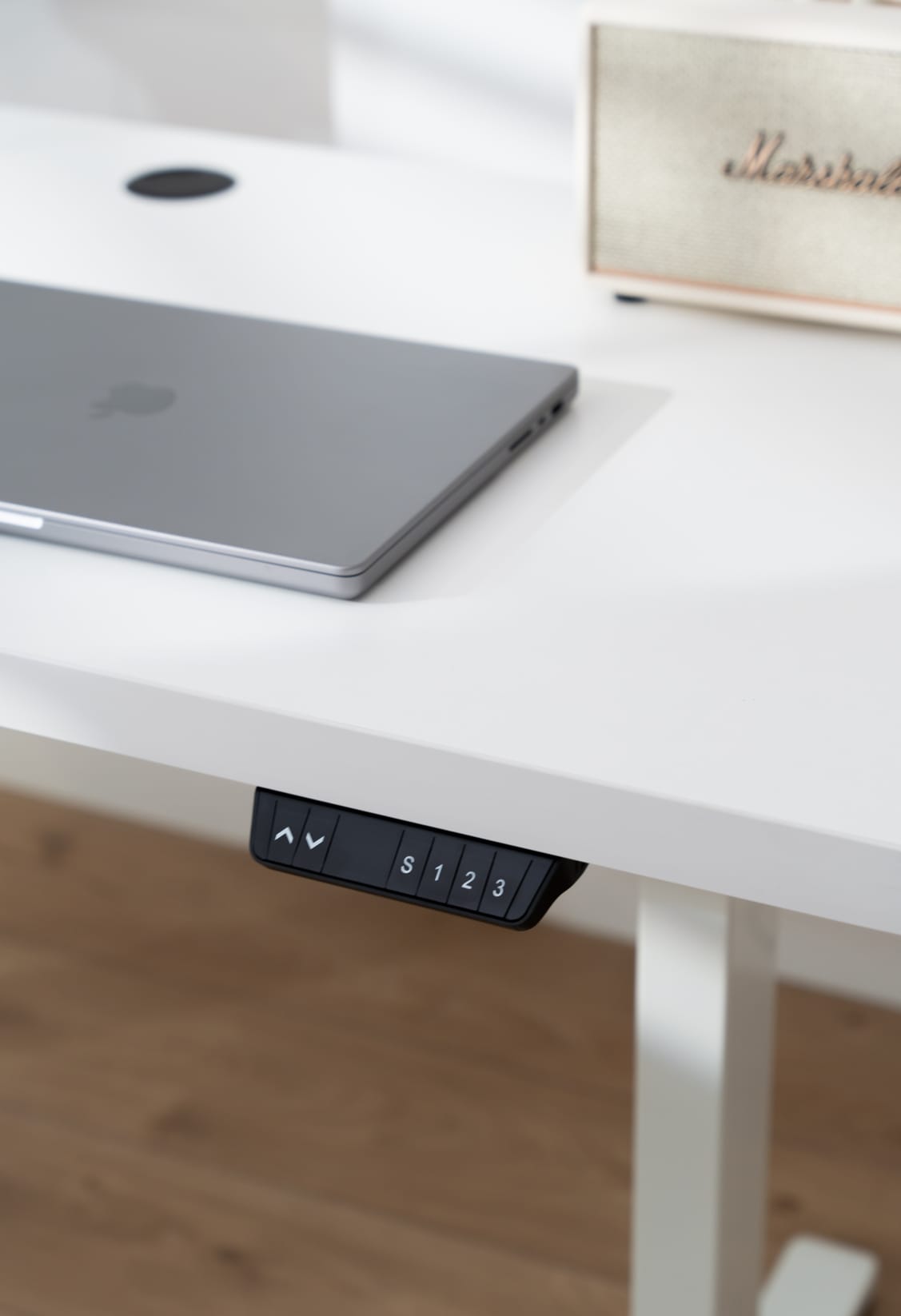 Kontroler z funkcją wyświetlania aktualnej wysokości i zapisu trzech ulubionych konfiguracji jest wygodny i wszechstronny zarówno w biurze, jak i w domowym stanowisku do rozrywki. Wyposażony w dwa gniazda USB pozwoli ci naładować swoje urządzenia lub podłączyć oświetlenie bez zajmowania portu w komputerze.