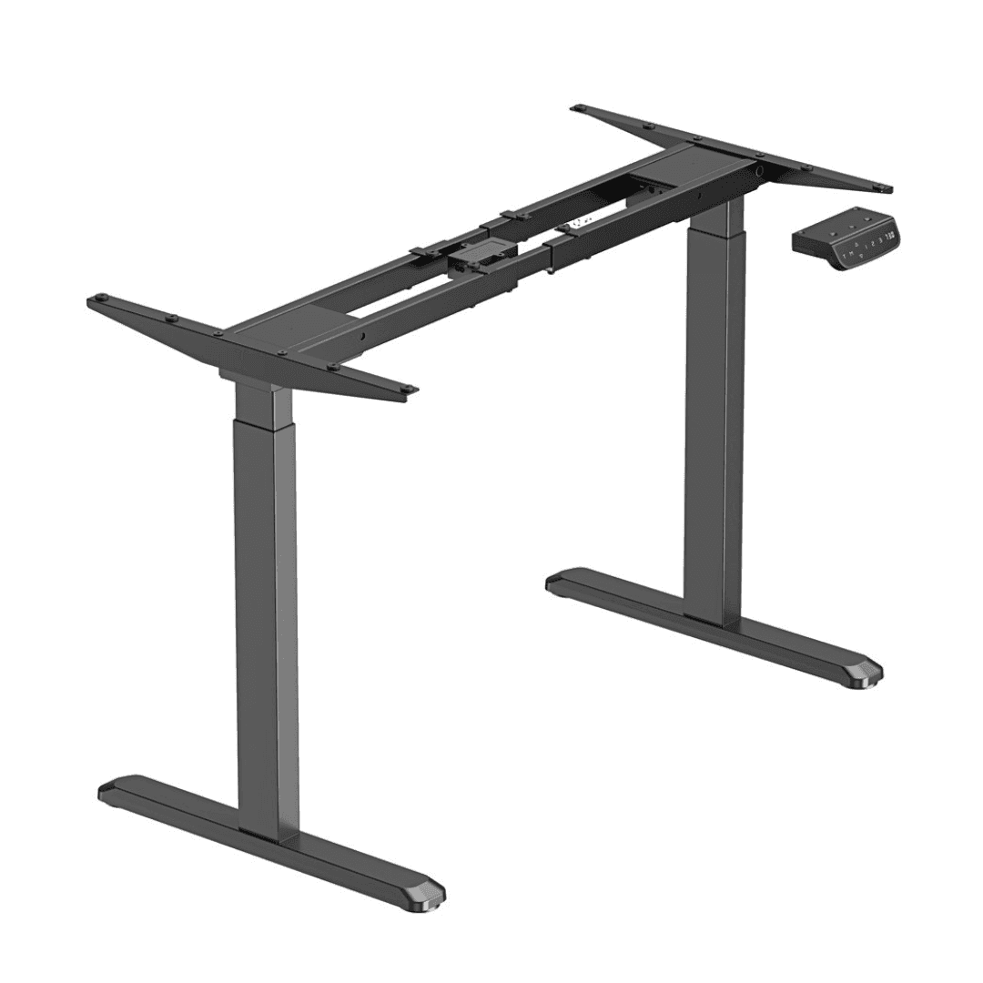 Regulowana szerokość pozwoli Ci na montaż blatu o szerokości nawet dwóch metrów. Dwa silniki oraz duży udźwig 100 kilogramów sprawiają, ze stelaż bez problemu poradzi sobie z blatem i wszystkim, co na nim.