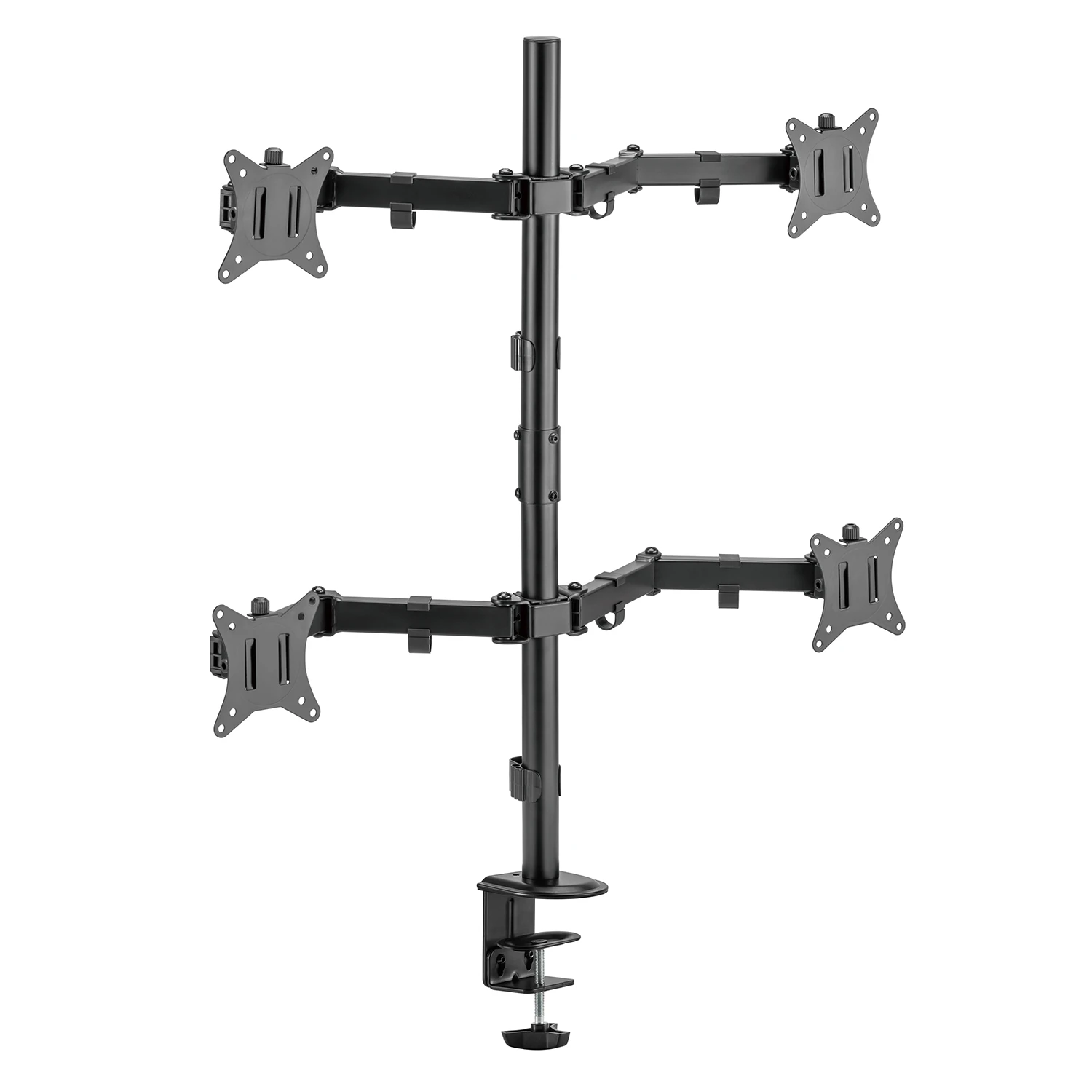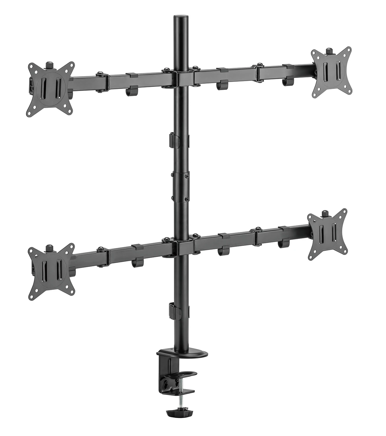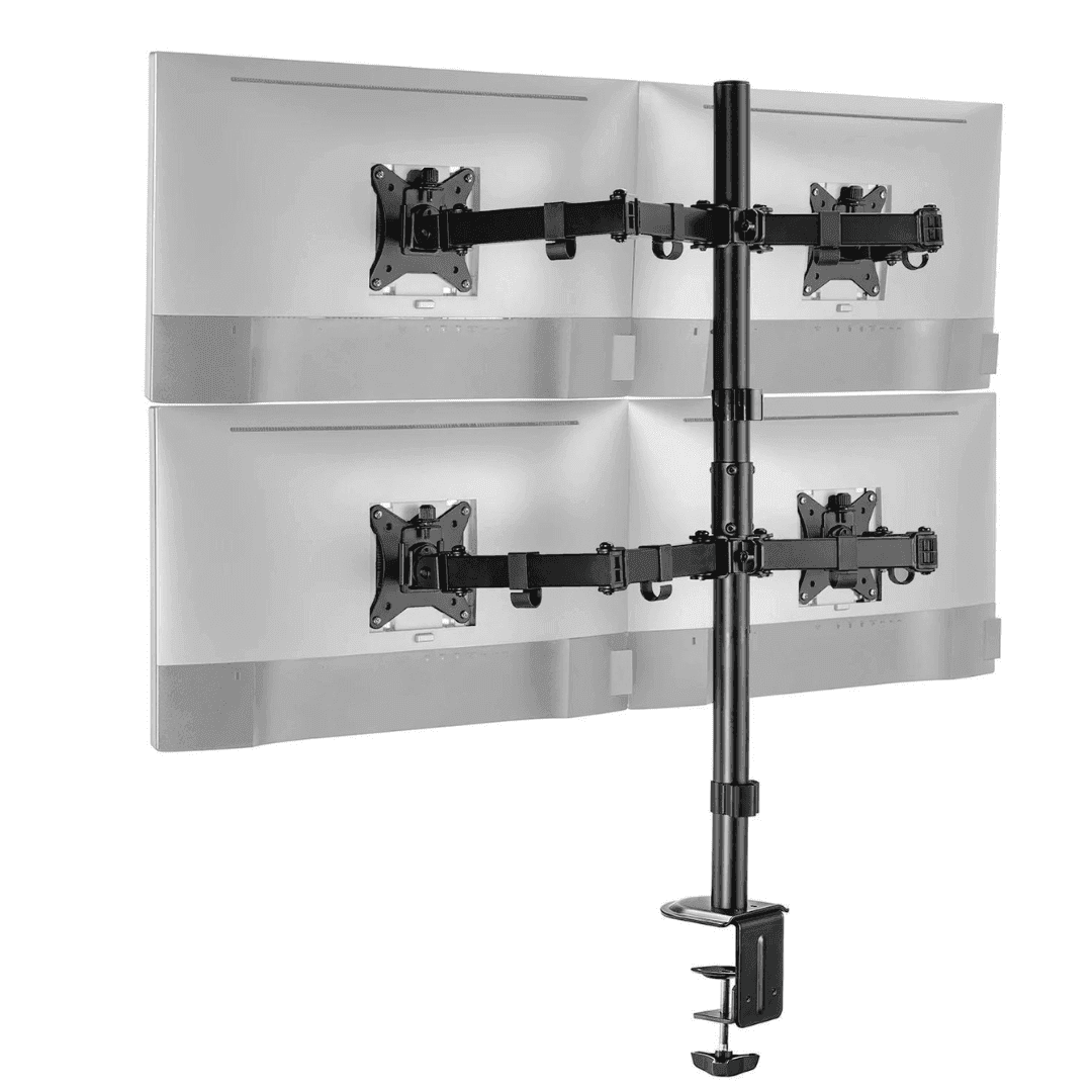 Dzięki wytrzymałej stalowej konstrukcji zapewnia stabilny uchwyt dla czterech monitorów o przekątnej od 17 do 32 cali i wadze do 9 kg. Konstrukcja o szerokim zakresie zapewniająca regulację i kąty widzenia, możliwość ustawienia pion/poziom.