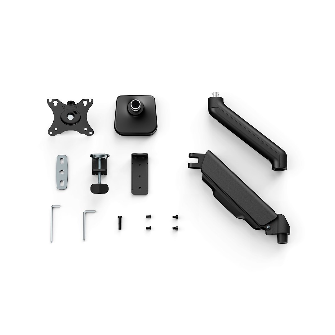 Z kolei kompaktowy zacisk do blatu zajmuje minimum przestrzeni w stosunku do tradycyjnej stopy monitora, dzięki czemu zyskujesz cenne miejsce na przydatne drobiazgi. Prócz zacisku na brzeg blatu w zestawie znajdziesz także element do mocowania uchwytu w bezpośrednio w blacie – jeśli masz blat z przepustem, możesz skorzystać z niego montując w nim ramię.