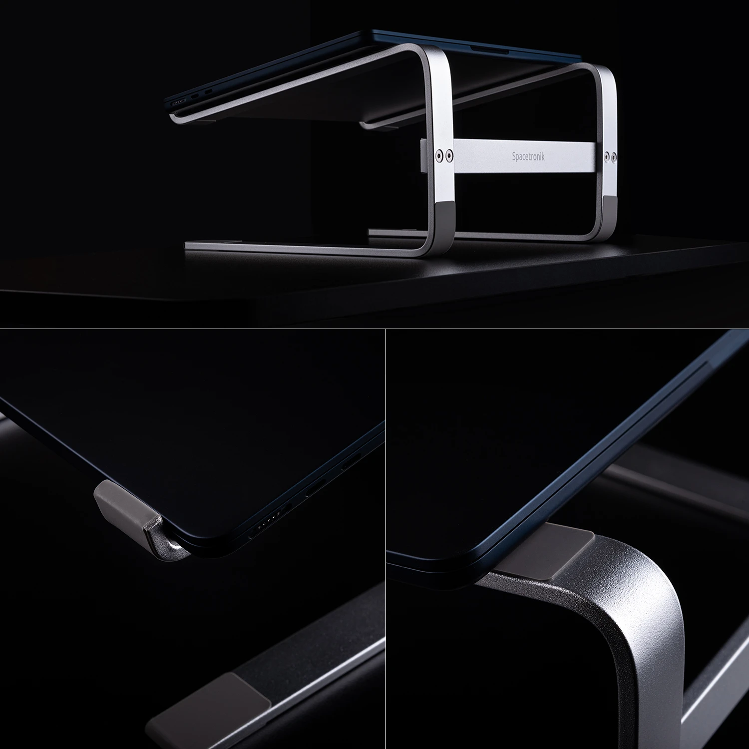 Podstawka została wyposażona w gumowane podkładki w newralgicznych miejscach. Tym samym zabezpieczając przed porysowaniem nie tylko biurko, ale również samo urządzenie.